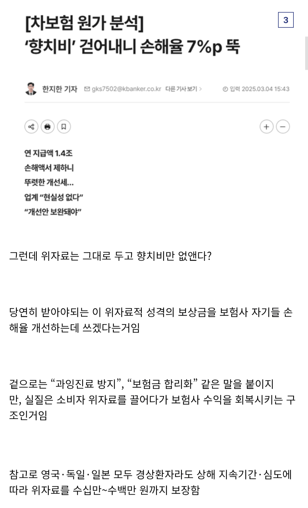 특히 "내가 내 돈 내고 가입한 보험인데 왜 혜택을 줄이냐", "사고 나면 몸 아픈 것도 서러운데 병원비 걱정까지 해야 하냐"는 성토가 이어지고 있습니다.
